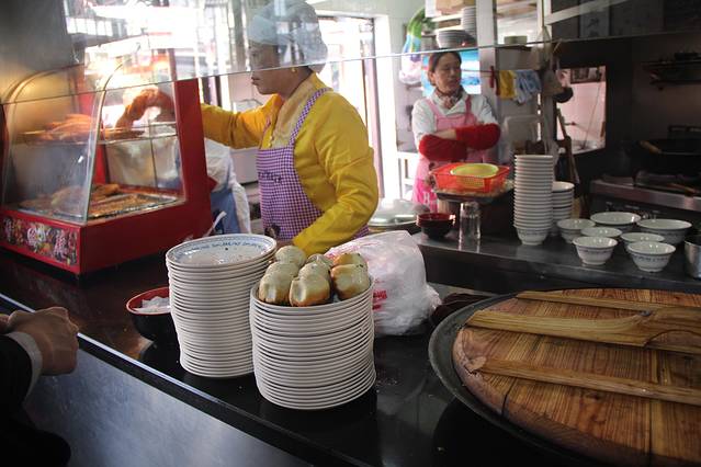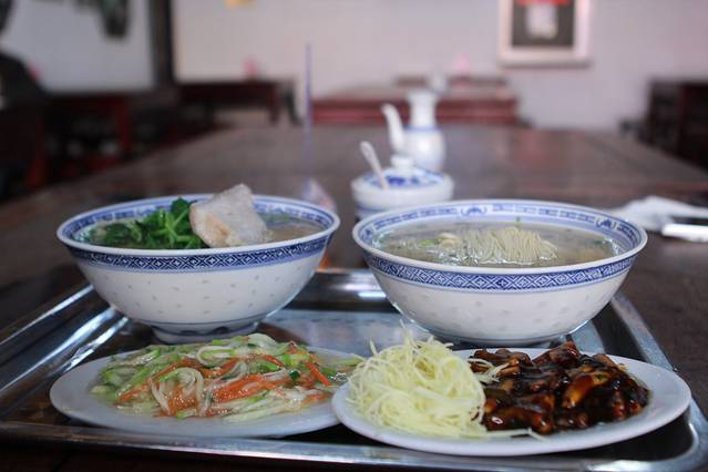 听杨先森说这里的焖蹄和鳝丝都是榜上有名,所以,他一份白面+焖蹄肉,我一份白面三丝,再一份鳝丝,早饭满满的饱足感~