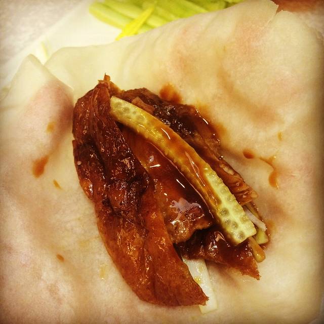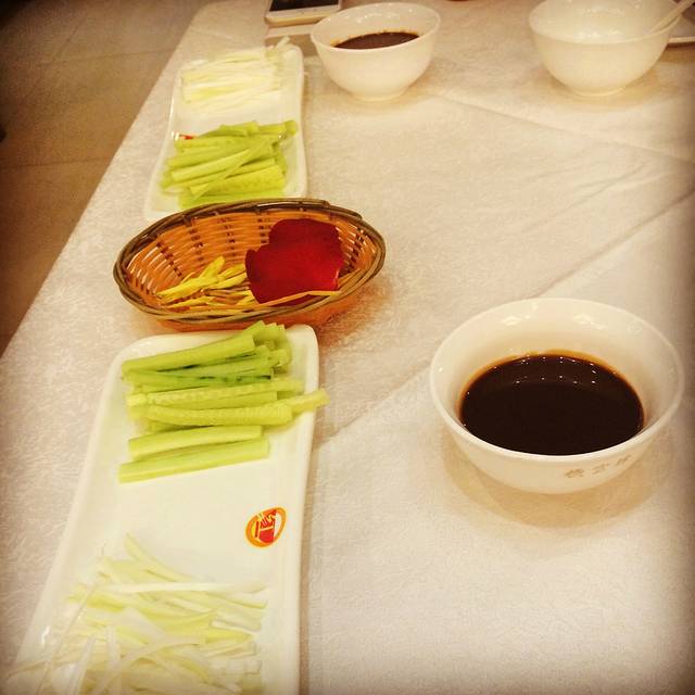 一只烤鸭,切片出来才两小碟,还有服务员会问你,是要外带烤鸭的骨架还是把骨架换做成汤,一开始我们觉得可能会吃不饱,所以还是选择外带烤鸭骨架,谁知道带回酒店都不想吃了。所以还是建议换做汤吧。