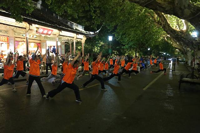 上海大妈晚上跳广场舞,杭州小年轻晚上在练瑜伽。。。