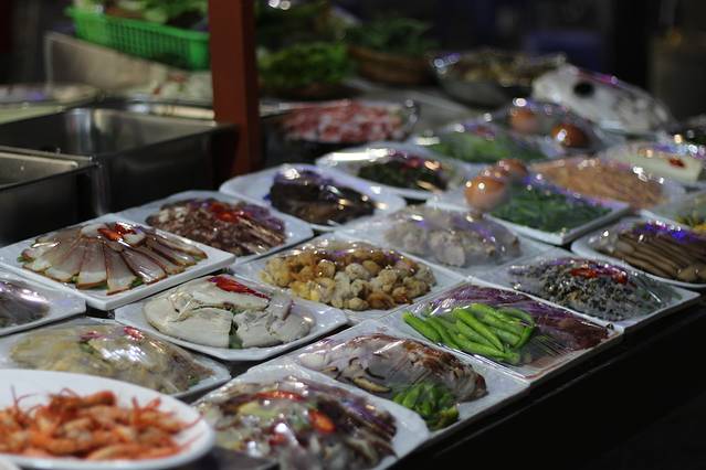 可是!看到旁边一桌上菜的时候这架势,我们四个人就决定,点点点!
