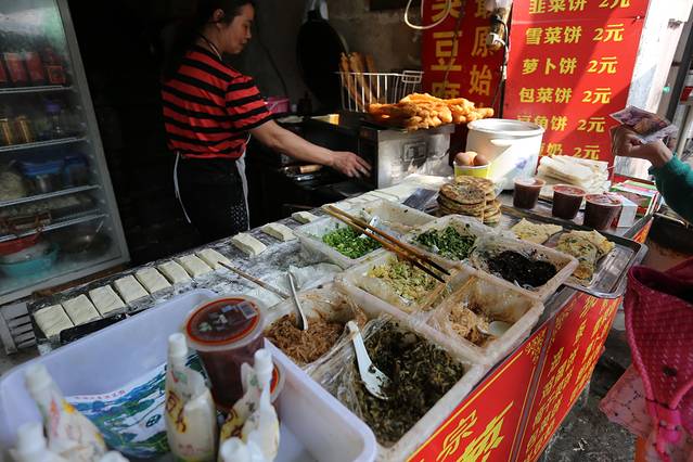 早上先到鼓楼美食街那儿吃个早饭,根据青旅小伙计推荐的地儿,味道。。。。真的不如小杨生煎!
