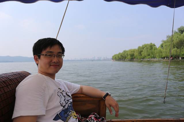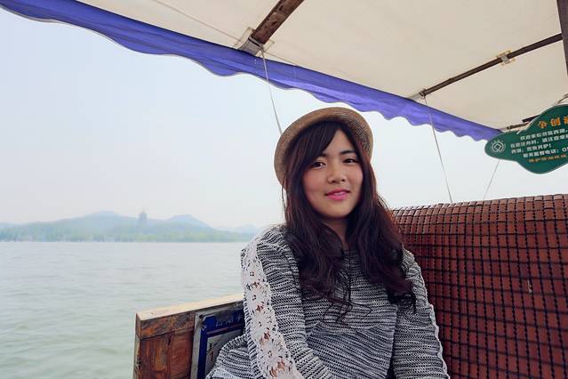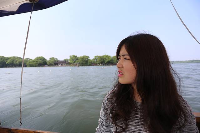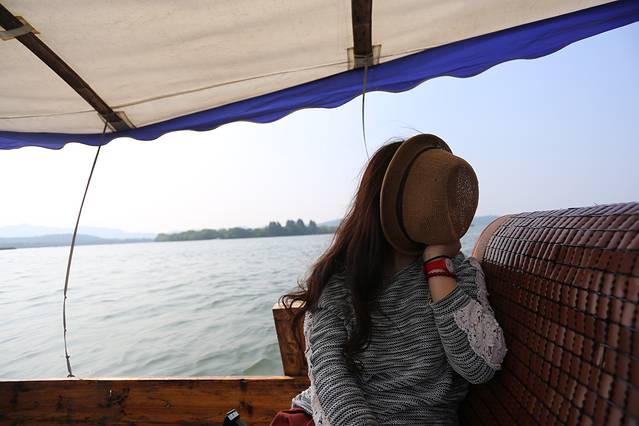和人家一起拼了一艘摇橹船,我们俩150,带着我们去三潭印月和湖心岛转了一圈。