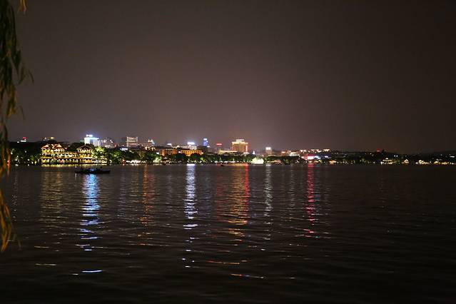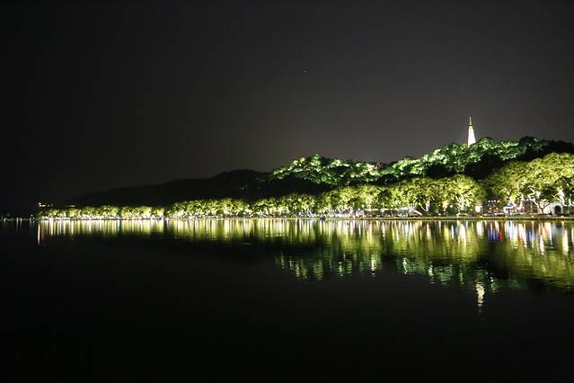 晚上的西湖边上更是有另一种风情,看起来非常的繁华喧闹,人潮涌动,车流不息。断桥上果然有很多人在夜跑,哎~留在下一次吧~留点遗憾总是好的~