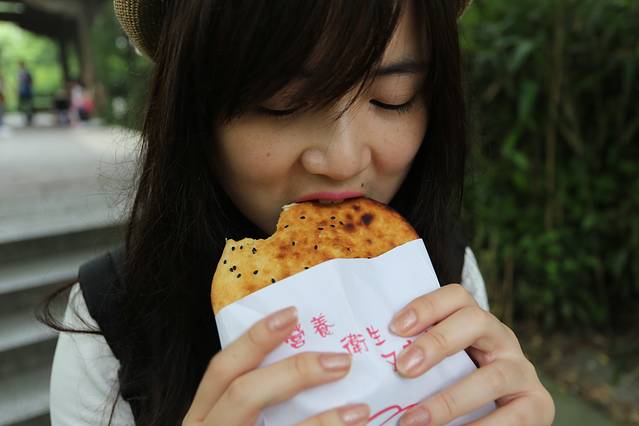 走累了,走饿了,已经是下午一两点钟了,湿地里面也没什么东西好吃,好玩的,好不容易有一家小店,烧饼人气爆棚(实在是没东西吃好吗。。。),赵小姐也买了一个垫垫肚子,10块钱一个,有点坑爹,杨先森说等下出去吃好吃的,我才不吃呢~