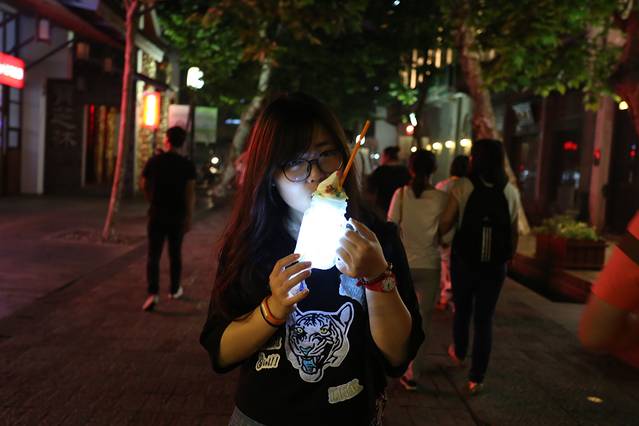 在路上看到很多人手上都拿着一个会发光的饮料瓶,赵小姐也被这拉风的外壳吸引了。。。。拉着杨先森进了这家店。