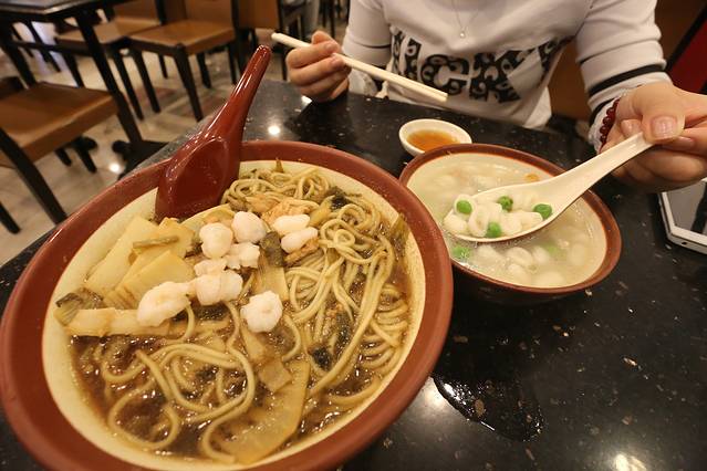 杭州的早餐没什么特别好吃的,相比较而言的话这个片儿川还是不错的,有虾,有笋,有肉,材料丰富。