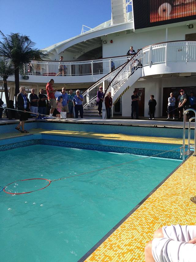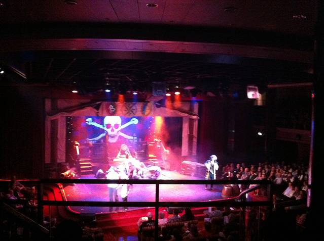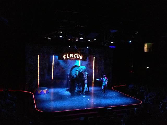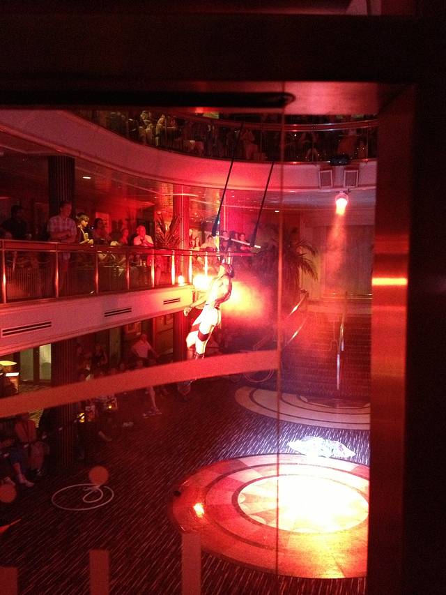船尾的剧场每晚都有不同的show,光线太差手机拍的不够好,这是最后一天的马戏团表演,一连10天的表演都相当精彩,深夜档还有黄色笑话听,哈哈哈(脱口秀)