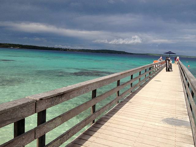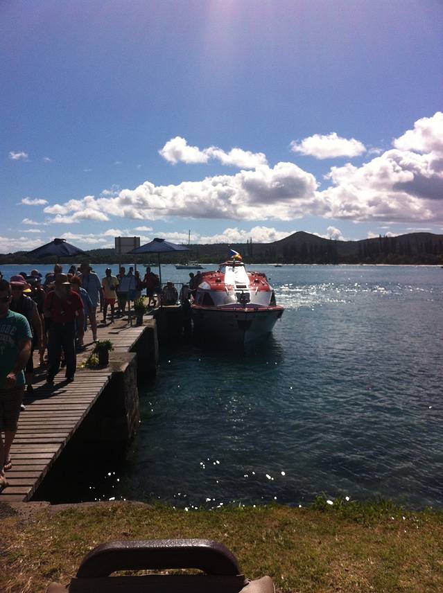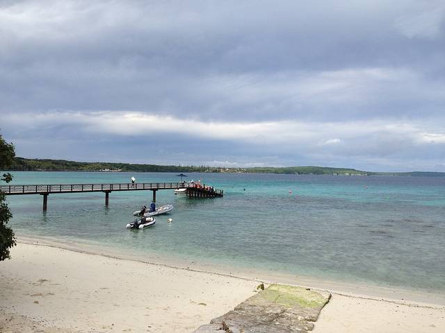 第四天一早,终于到了南太平洋群岛的第一站了,isle of pine,名字是因为照片中那种高高的松树而得名,我们登陆的这一边还不是很多,对岸便是成排的松树了。