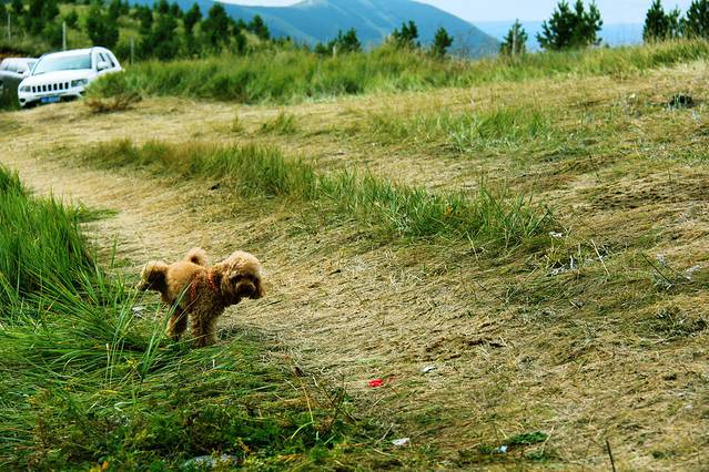 一路上大概停靠了5、6个地点,拍照、赏景、放狗~ 旺仔在一处草地好开心,蹦蹦跳跳像只小兔子,他的热情吸引了很多目光,很多拿着相机的人都喊他,狗狗过来给拍一张,哈哈。不知不觉,我们从野狐岭西入口出来的时候已经是下午2点50分。在美丽的草原天路,我们累积用时6小时。