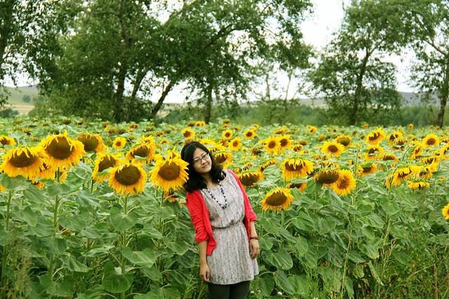 省道路况很好,两边山峦层叠,山上大片农作物呈现出层次分明的颜色,时不时看到各种野花和向日葵花海,早起农作的村民,和牛、羊、马。也许是因为这边土壤问题,几乎家家都种向日葵,路两边一望无际的向日葵花海一定会有人跳进去拍阿拍,这对于刚刚从青海看过油菜花田的我来说还是颇有感触的,因为这里的花海同样是村民辛苦劳作的结果名花有主,但没有人向你索要拍照费用,后面在天路经过的村庄看到另一片花海,情不自禁在里面疯跑疯跳还踩倒好几颗后,才知道那些花是村民种植采集麻油的植物,当下便觉得自己很愧疚。花海里那么多人,一天要踩坏很多棵,这里还是呼吁大家在拍照时自觉维护农民的劳动。沿省道一直向前,不断有车停下来拍照,因为没有摄录又是清晨,对面车道几乎没有车开过来,大家都开得蛮快。我们中间停下来两次左右,到达桦皮岭已经快9点了。