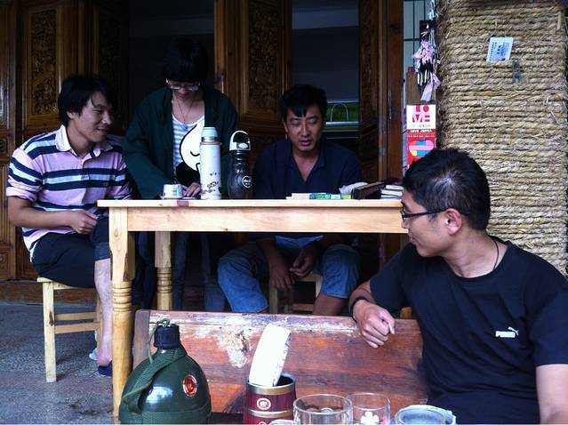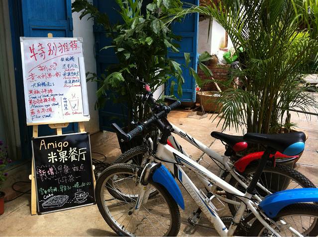 中午开始下雨了,正在愁着下午骑不骑车去才村码头,偶然和同学在网上聊天得知有同学在古城某个客栈当义工。这简直是让我热泪盈眶啊~~~这种在异乡遇见熟友的感觉太温暖了T T有没有!!!雨停后我飞快地骑着车找到了同学小迪迪,于是乎我们一起骑行去才村。