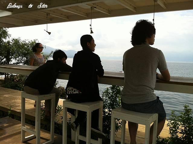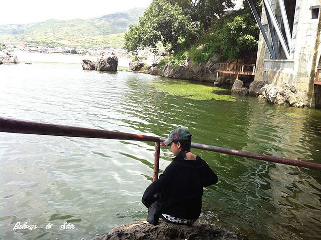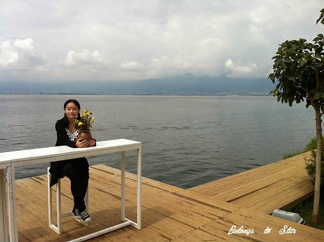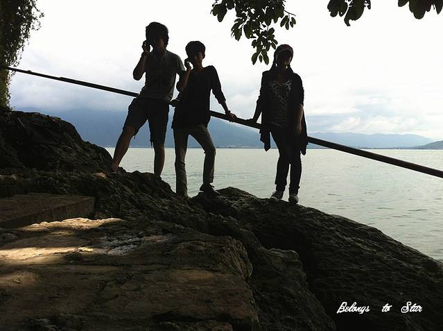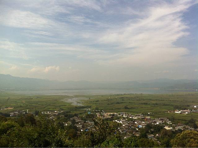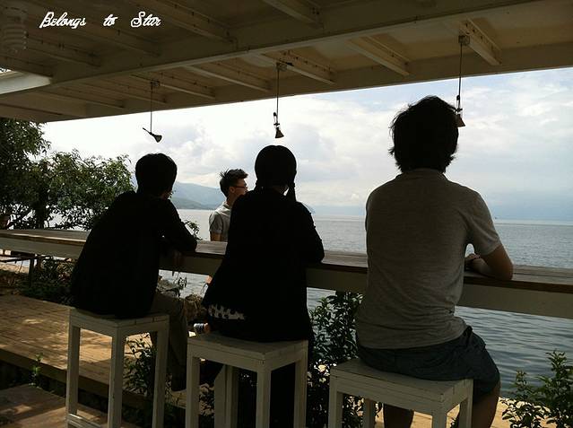 歇了一阵后那个带我们来的青年又带着我们到码头旁边不远处的一处小亭去看洱海,因为码头要收门票,相比起来,这里也不错。