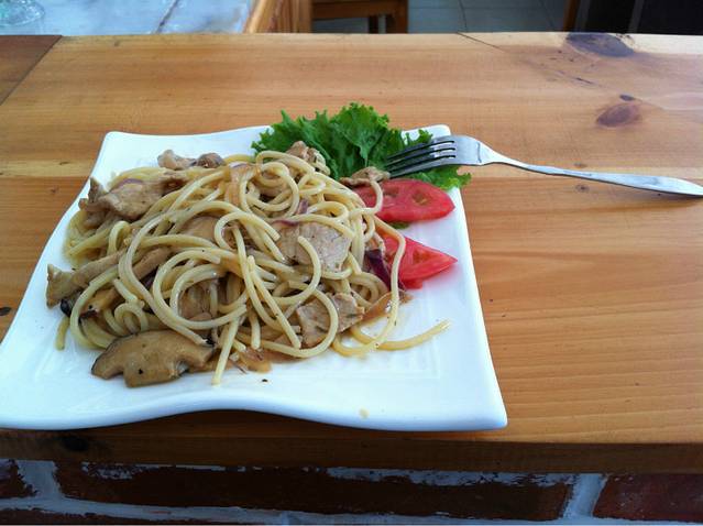 午饭是去的很受推荐的一家传说中的法国老公,中国妻子开的amigo西餐厅。去的时候没见着他们,一问才知道原来他们也只是来这里负责管理的,而且签证到期早就离开这儿回法国了。。。好吧,这就算了,最让我失望的是,这里的意面真心不好吃不好吃啊T T。。。