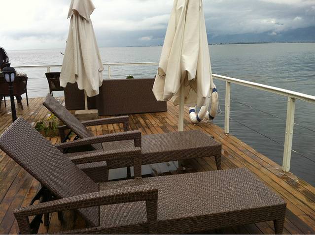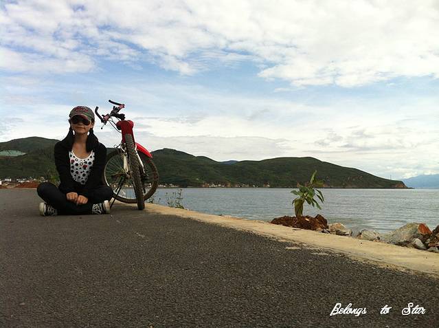 骑累了,在洱海边的躺椅上歇息,亲水的好机会啊,我却没穿拖鞋T T