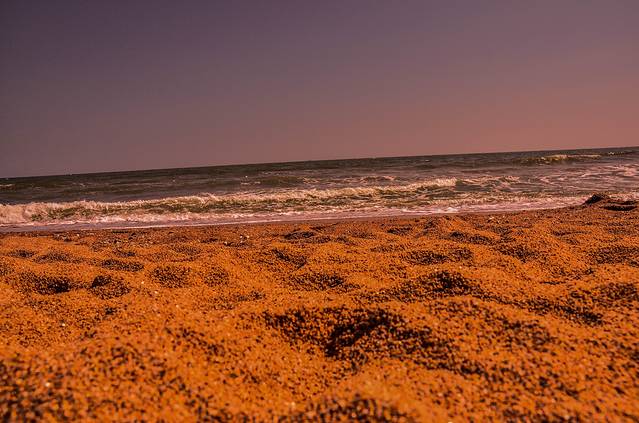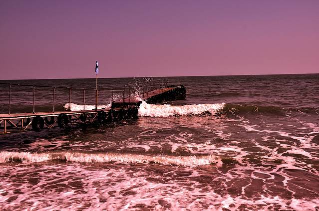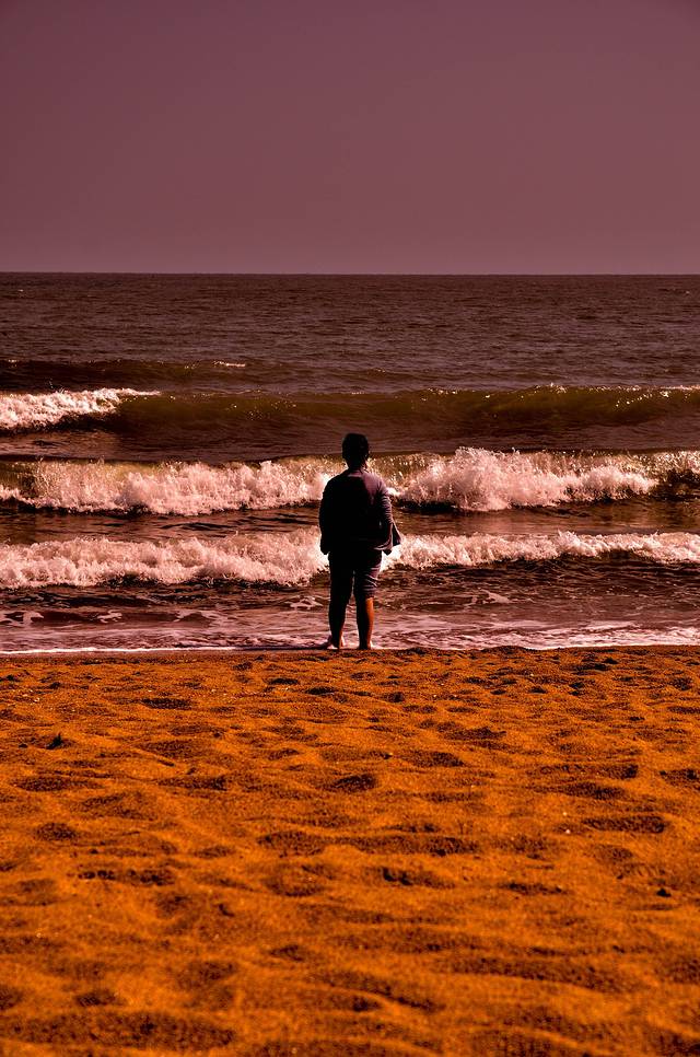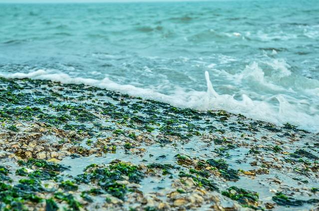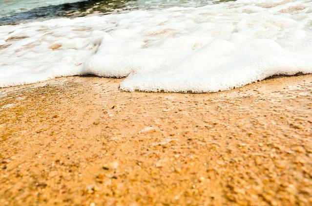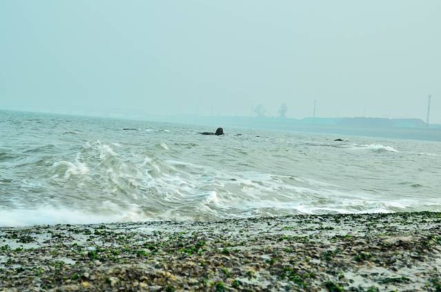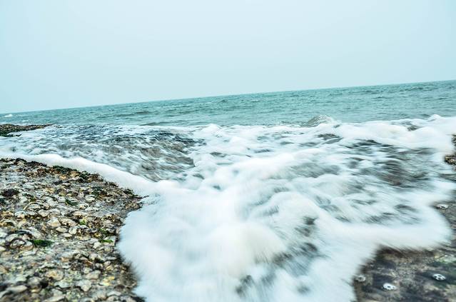 起浪了,越来越大,不敢在岸边站着了,赶紧后撤、、
