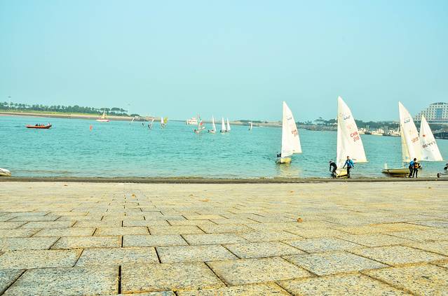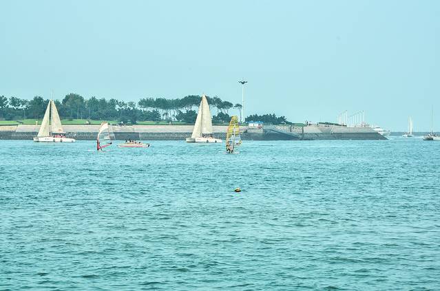 我惭愧,想去看日出的,结果第一天就睡了3小时,太困了,一觉睡到中午。好吧,在酒店冲了一个澡,随便解决午饭,直奔奥林匹克帆船中心,看见体育生在训练帆船,虽然看不懂但是感觉很牛逼的样子、、