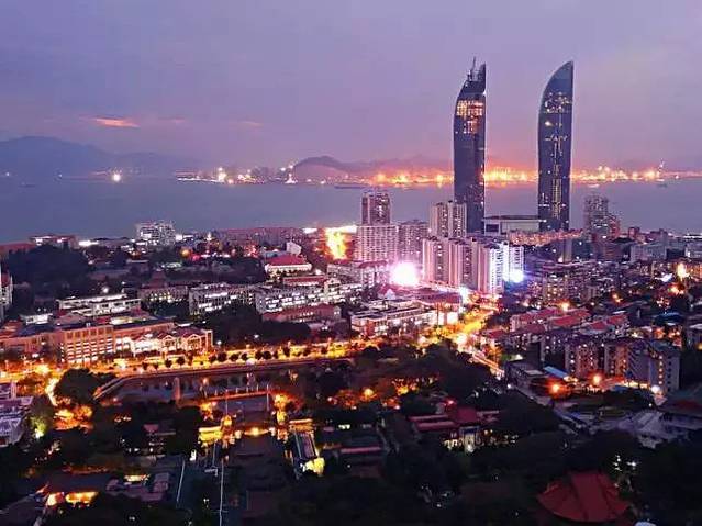 ▲站在南普陀后山山顶,眺望厦门,厦门思明区和远处的鼓浪屿的夜色尽收眼底,美轮美奂。(拍摄于厦门南普陀后山)