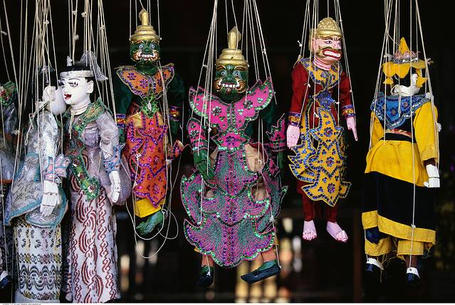提线木偶是缅甸的国粹之一。木偶制作精良,细节处特别细致,有不同历史人物和神话人物可供选择,用料也精致,值得买一两件留作纪念,同时也是送礼佳品。价格在10,000 甲左右