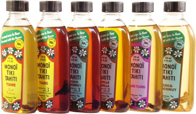 鲜花椰子油是大溪地名特产之一,它是将大溪地白栀子花浸泡在精炼过的椰子油内所提炼出来的油脂,是真正大溪地产的鲜花和纯椰子油的混合体,香气宜人。两千多年以来,大溪地的女人都用它来柔顺头发,保养肌肤,具有出色的护肤及杀菌作用。鲜花椰子油还能够快速补充肌肤的含水量,平滑皮肤,尤其是大溪地日照比较强,用它涂抹肌肤可以改善日晒后所产生的脱皮现象。鲜花椰子油除了有最经典的栀子花香味,还有椰子香味等不同香味可供选择,是人手一支的必备单品。