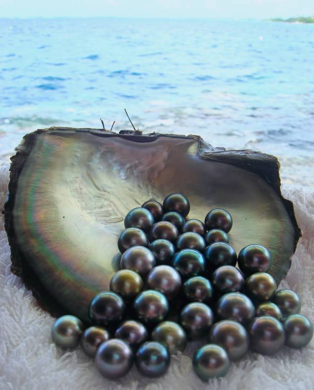 大溪地出产全球95% 的黑珍珠,自然是因为这里有着大量黑珍珠的母贝——黑蝶贝。黑蝶贝主要生长于法属波利尼西亚海域,通常为浅灰色或银灰色,除了大量被切割成纽扣作为商业用途之外,部分黑蝶贝也被运用在装饰品上,经过打磨工艺后便可做成首饰托盘、摆件或首饰品等,非常精致美观。