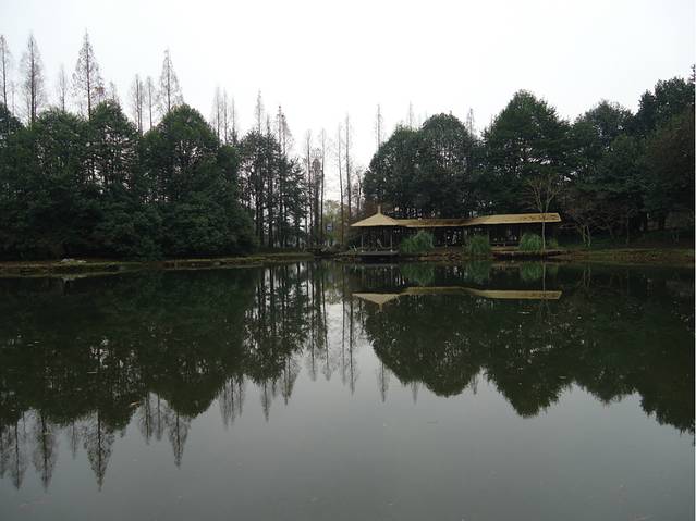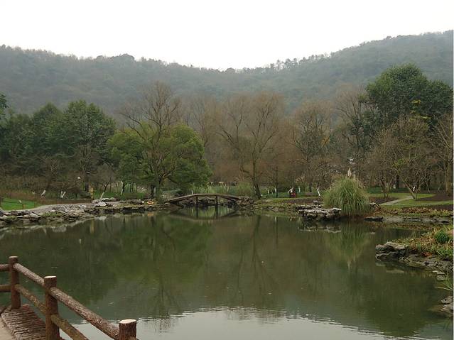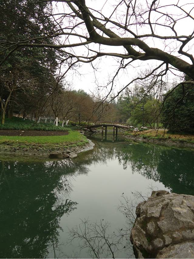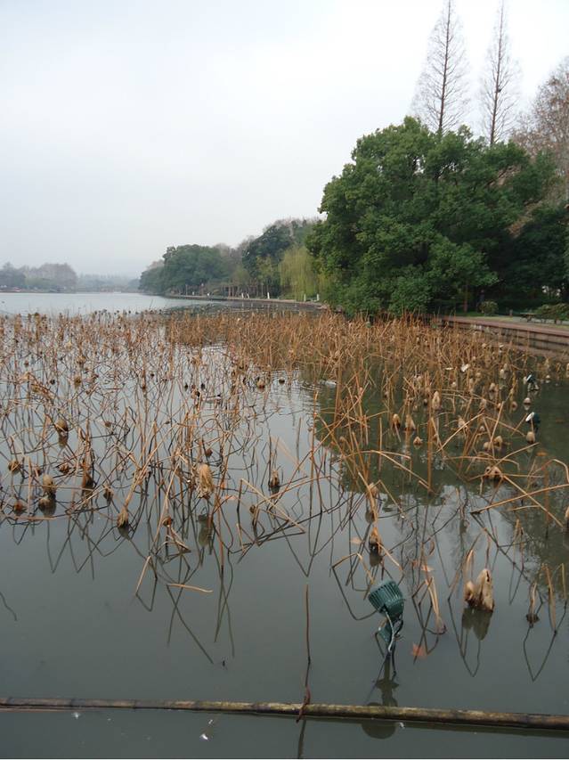 . 雨停了,去太子湾公园(就在雷峰塔边上),8过冬天好像没什么花啊,但是还有拍婚纱照的... 顺势爬了公园里面的山,有点高度,大概相当于三、四十层楼吧,呼呼