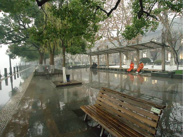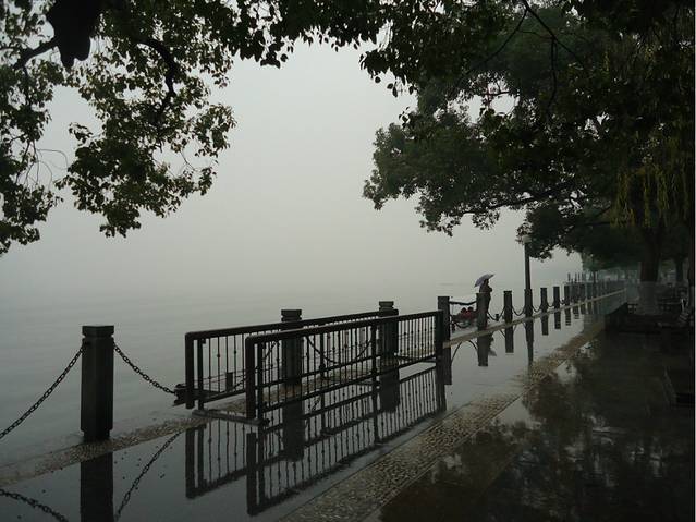 中午左右到的杭州城站,打车去西湖柒号(西湖店),放好行李出去乱走,吃点东西,西湖边上发呆~~下着不算太大但必须撑伞的雨,游客寥寥。