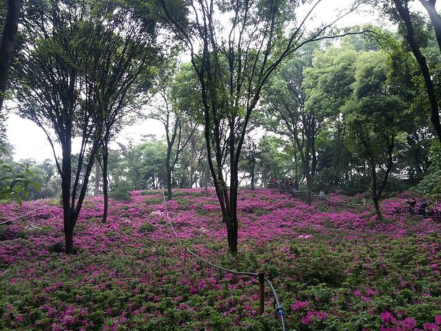 第二天是去东湖的磨山景区,磨山本来是夜赏杜鹃的活动,这个时候杜鹃开的正旺,刚开始没有下雨,在浏览一半的时候下起了雨,雨中赏杜鹃,走林荫小道,也别有情趣。因为下雨,人很少,心情很好。