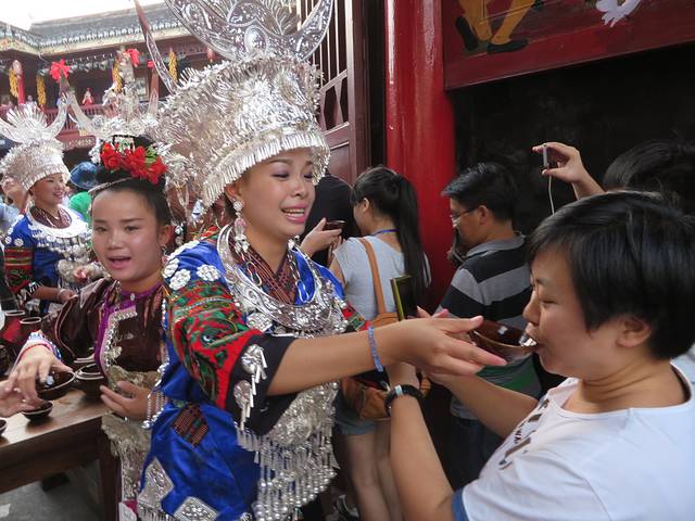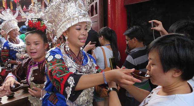 喝过苗家人的拦门酒才能真正算是进到了苗寨里