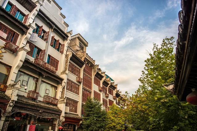 每座民居都附有特色,天空的云和近处的楼对比起来,非常有格调有木有