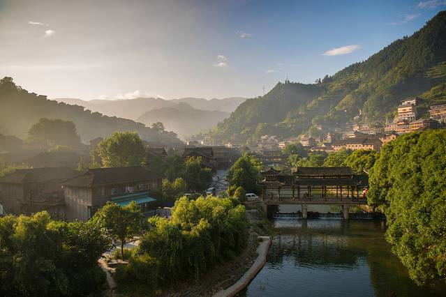 早晨,天蒙蒙亮,晨雾弥漫着整个寨子里,听不到喧闹只闻鸡鸣和鸟叫。