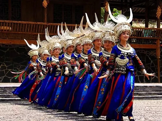 盛大的歌舞是热情的苗寨姑娘欢迎客人的直接表现,在这里,你会被这群姑娘感染,跟着旋转起来。