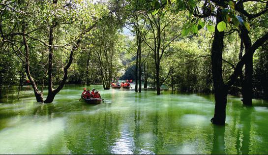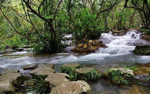 水上森林是在一片坡地上,因水往下流,经过的地方长着各种树木,所以叫做水上森林,又名瑶池。