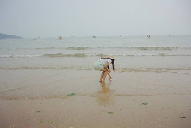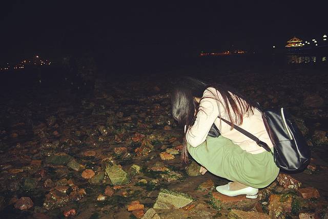 夜幕来临,海潮退去,大海又归于平静。这时的沙滩上,礁石堆就开始热闹起来了,螃蟹,小虾,小鱼,小海螺,据说还有海胆!挽上衣袖,提起裙子,在手机灯的照明下,不顾任何形象的在乱石堆里翻找着那些小生物。每次发现,都给人许多的惊喜,让人想起了小时候在池塘里抓田螺的场景。