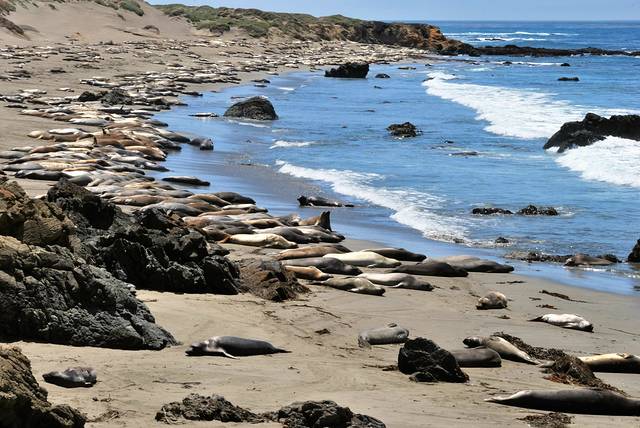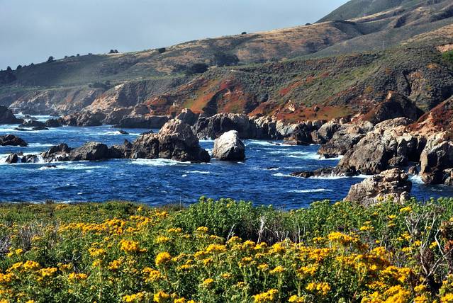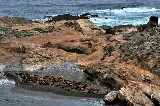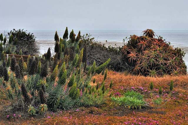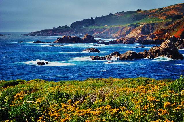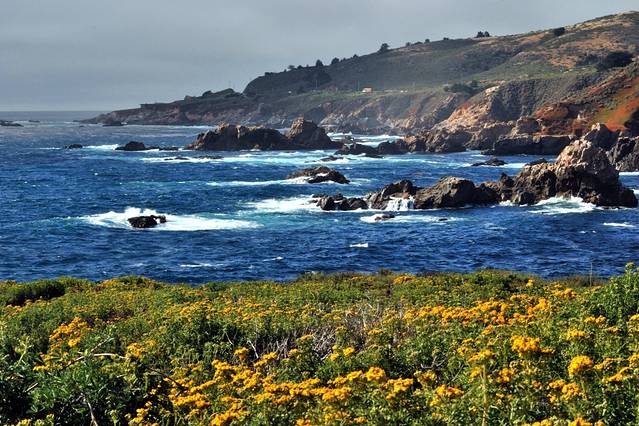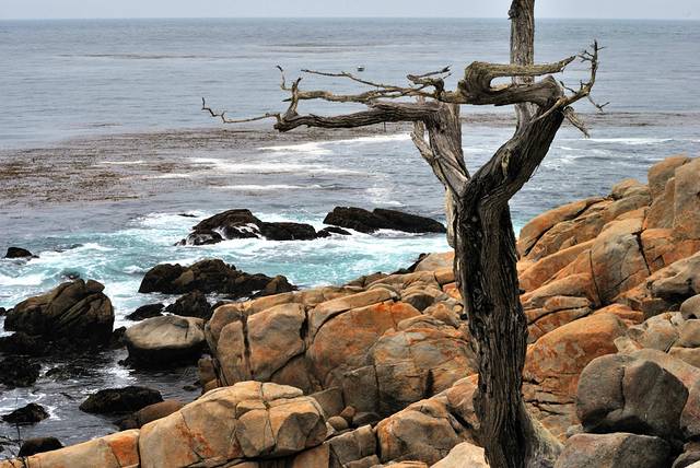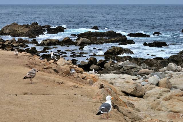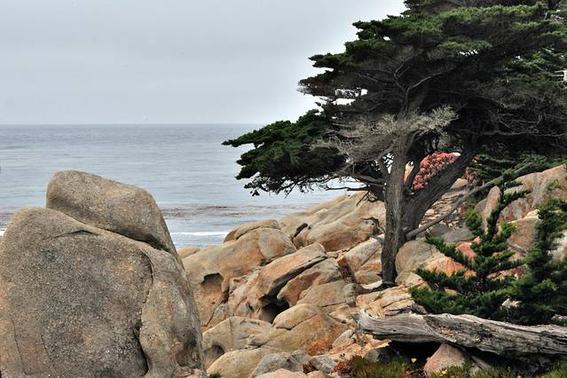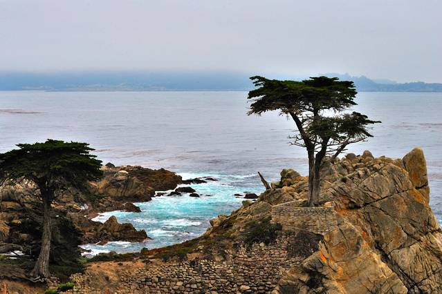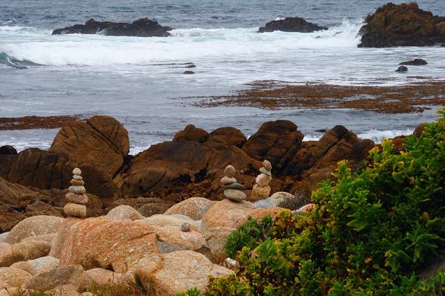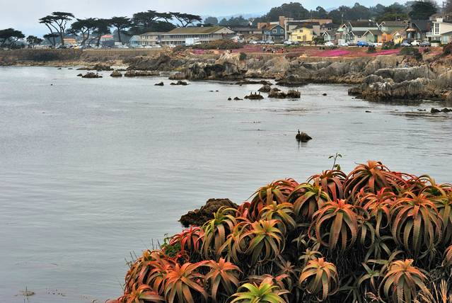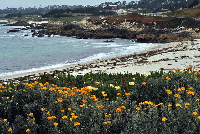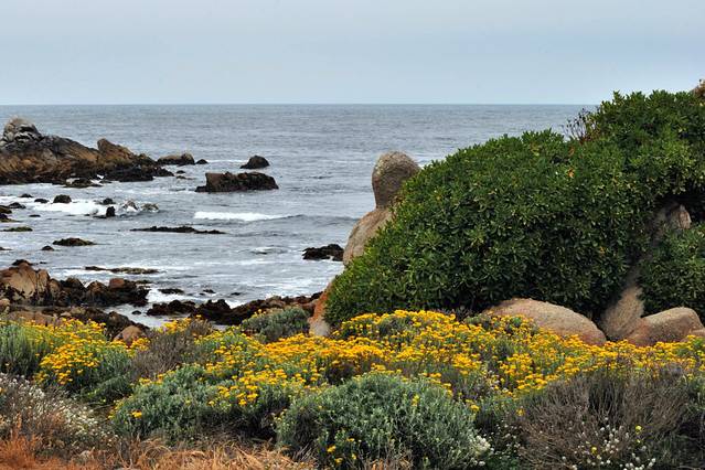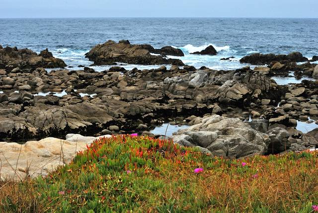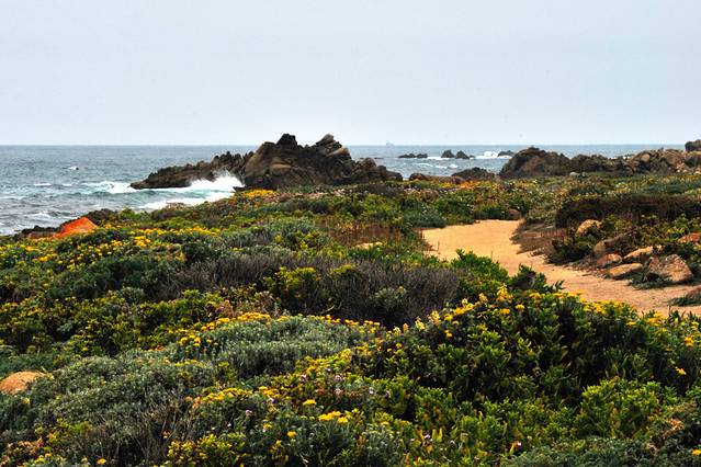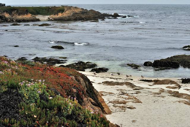 蒙特雷半岛包括太平洋格罗夫和十七英里路两个片区,景色基本一样,都是沙滩和海边步道。本人觉得太平洋格罗夫的风景较为自然,漫山遍野的野花野草,沿岸没有遮挡,景色连成一线,十几里的沿岸步道可以走上半天;十七英里路多了一些松树景色,由于沿岸建设了别墅和高尔夫球场,风景线被分割得支离破碎,只留下几个像窗口式的观景台。如果赶时间,大可不必花上10刀路费进去。