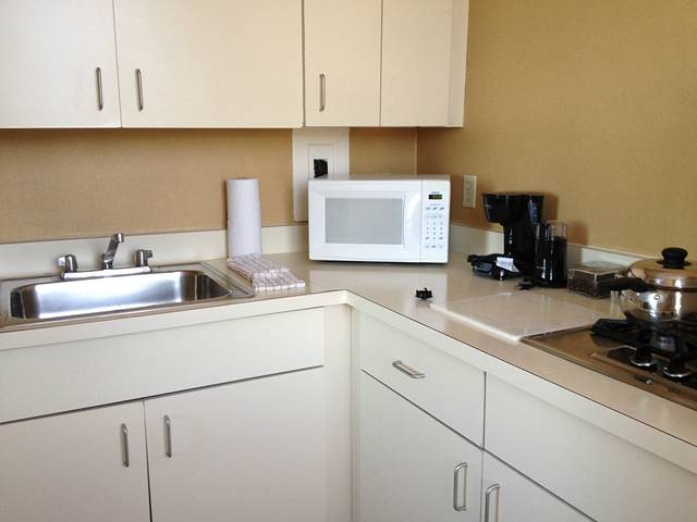 我们住的是套房,一房一厅,还有饭厅和厨房,客厅有可以打开的沙发床