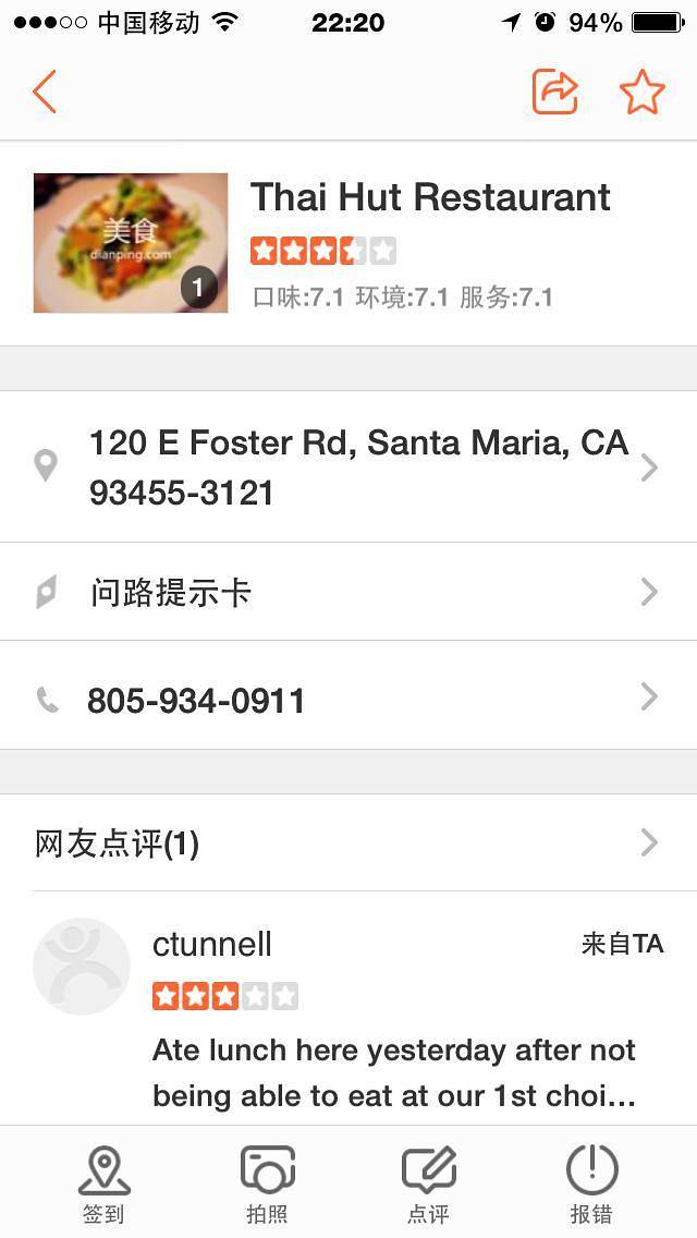 儿子用“yelp"(美国的大众点评)为我们选择每天的美食
