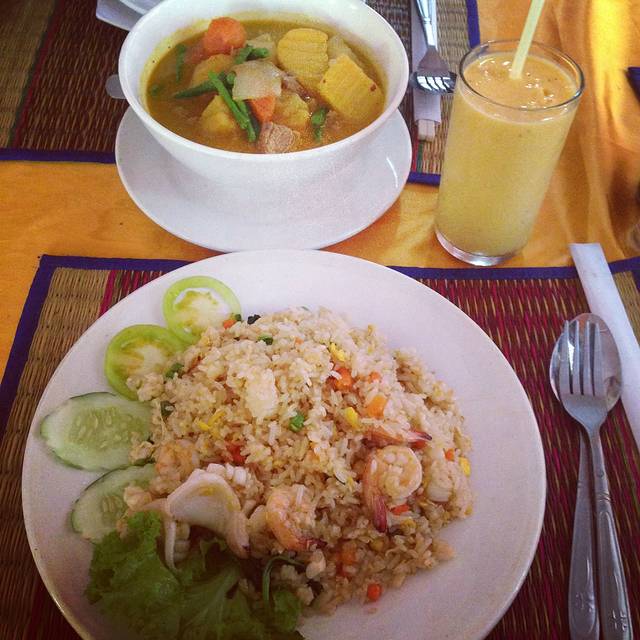 第三天倒是没那么猛烈的艳阳,我们便叫了辆酒店门口的tutu代步。这些地方规模不大,停留的时间较短,转的快多了。也穿上昨天在本地买的民族服装,戴上丝巾,入乡随俗。但奇怪的是,本地人好像都不这样穿,看到的都是游客才如此打扮哈哈。