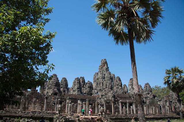 巴扬寺坐落于吴哥通王城的中心,建于12世纪末,始建者为苏利耶跋摩一世。周围有48座大小不一的宝塔,众星捧月一般,簇拥着中心宝塔。令吴哥窟蜚声世界的“高棉的微笑”即在此。