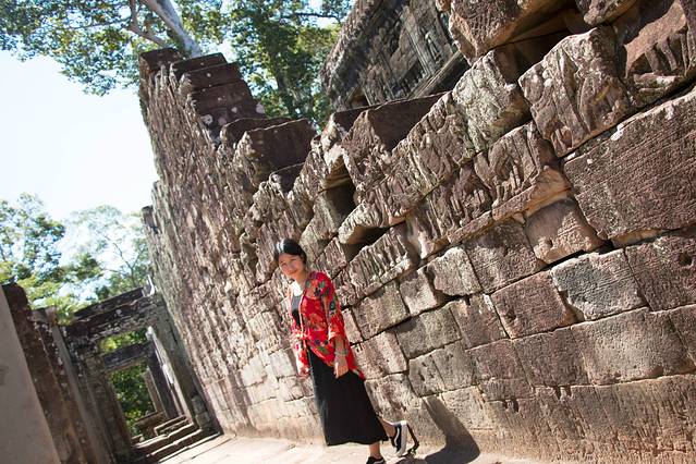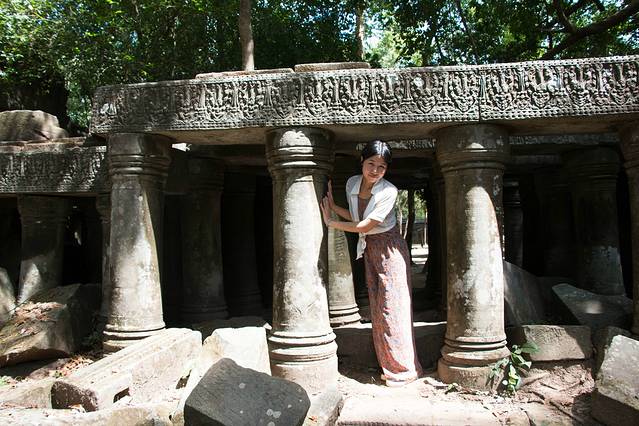 崩密列是吴哥最神秘的寺庙之一,因为它已经完全陷落于荒野之中,在崩密列,你可以看到吴哥窟未被发现前在丛林中沉睡的模样。我们几人在残垣断壁间攀爬,来来回回还迷路了,大有丛林探险的味道。