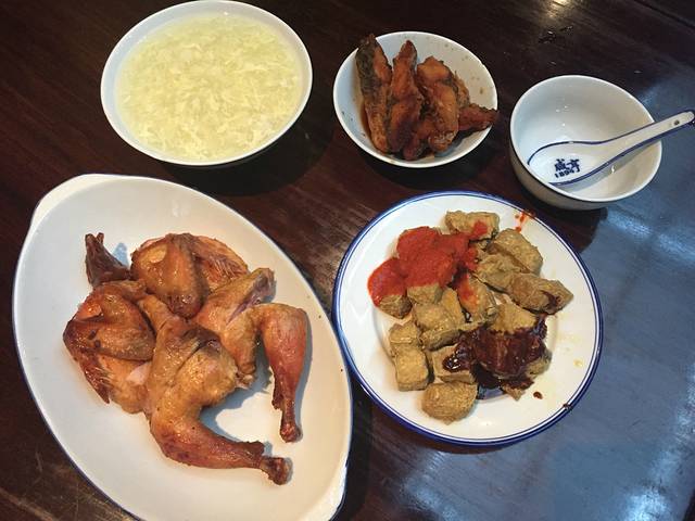 中饭之臭豆腐、酥鱼,酒酿和那啥鸡。不是我点的菜,名字忘了。。。。要先充值换卡再点单。口味真的是尝尝知道就好了。人流量真心多。。。。