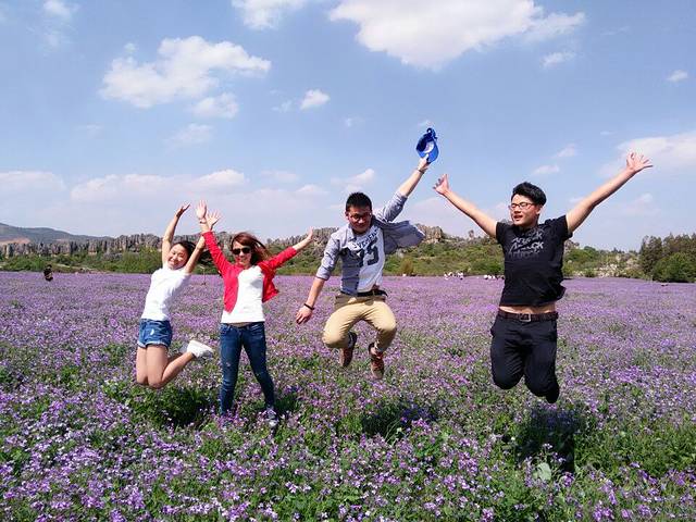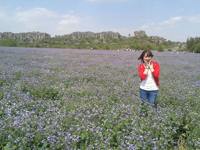 乃古石林在彝族中指的是黑色的石头的意思,乃古石林每年4到5月的紫色花海很美,每年9到10月的格桑花也美