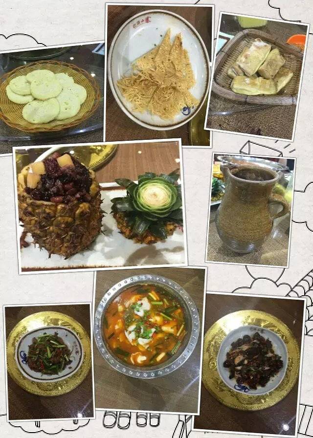 傣菜,真心不适合我,酸甜辣都迟到了,真心接受不了…………不过那个喝的叫什么忘记了,真心好喝,和奶茶差不多,但是那个面包朋友说是缅甸进口的,要这样的面包搭配,才能出这样的味道……