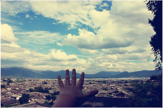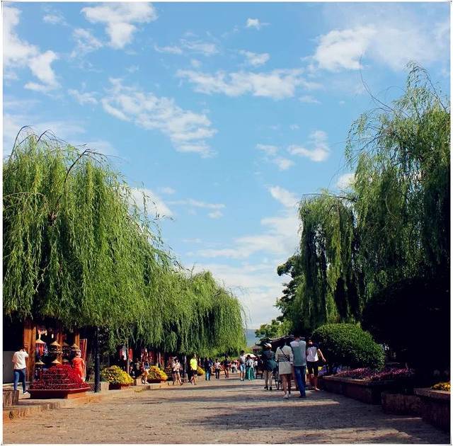 丽江古城的主街道,有点多了,这个是下午拍的,但是真心随处可以看到蓝天、白云……让我这种在广州习惯了雾霾的人,情何以堪……