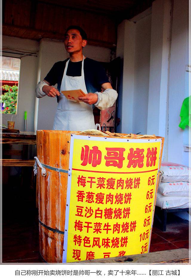 客栈附近一家卖烧饼的,推荐香葱瘦肉烧饼,真心不错。店家很能聊,问他为什么叫帅哥烧饼,他说当年他开始卖烧饼的时候,是帅哥一枚。烧饼卖久了,人就这样了,叫我们千万不要卖烧饼……