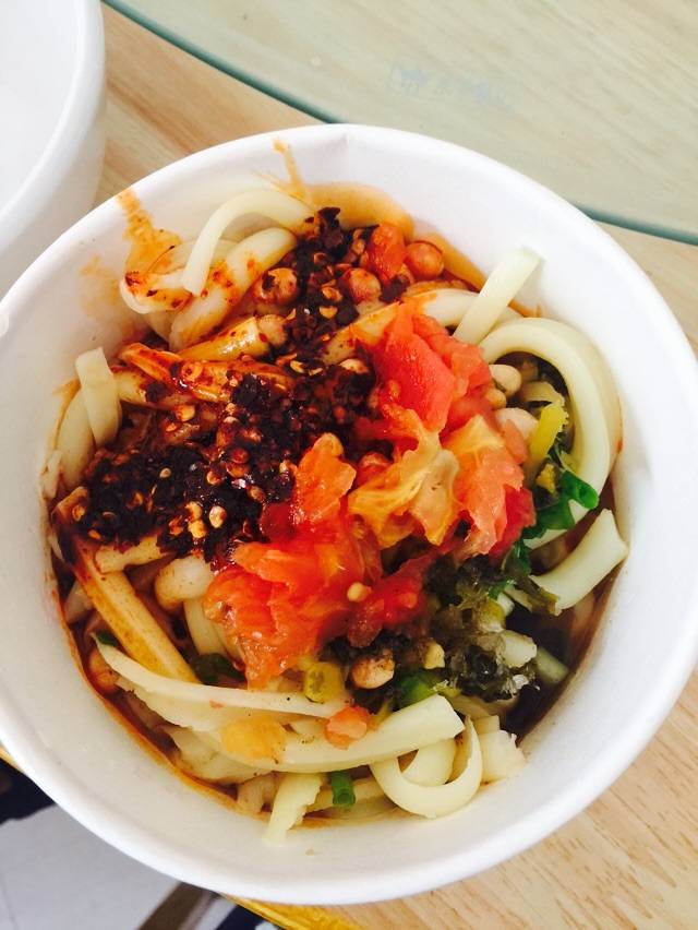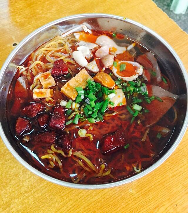 贵阳有三个卖肠旺面很有名的地方,家家各有特色。最有名的在大南门的南门口,每天都要排很长的队,刚到下午基本就卖完了,同学说去三次才能吃到一次,就带我们到了第二有名的。