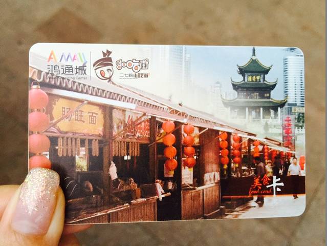 小吃街入口有办卡的地方,里面的消费一律刷卡。20、40、80、100不同面值。卡不需要押金,花完了可以自己留着,作为纪念。