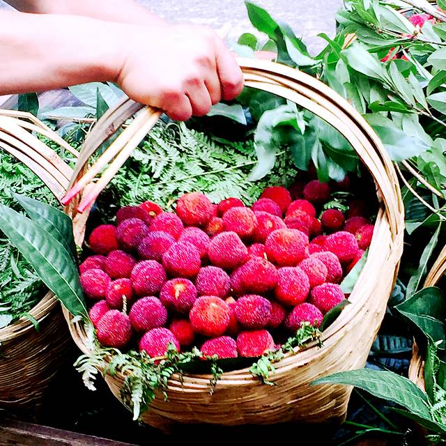 路边有很多新鲜的杨梅,大大的红红的,引诱味蕾。