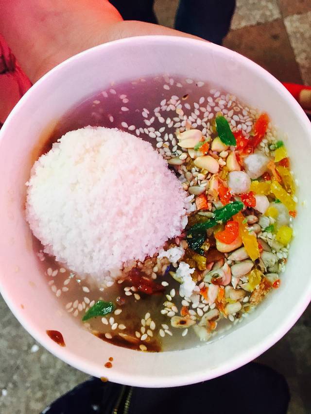 某个小摊的牛肉粉,里面很神奇的有猪肝。这里还有很多黑暗料理,比如号称天津包子的三鲜馅包子里有豆沙……