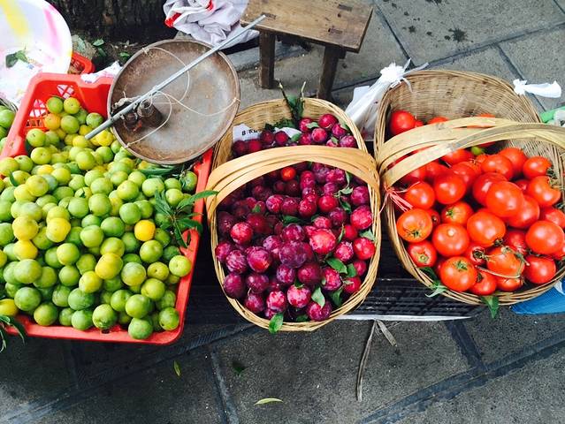 景区里卖的水果,价格不贵颜色美丽,这里的西红柿特别多,尤其是景区里,基本上所有的菜都要放西红柿,很是奇葩。