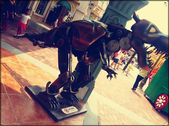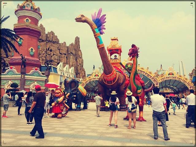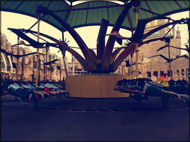 中华恐龙园,是一个以恐龙为主题的游乐园,门票200元,1.2米-1.5米的小朋友半价。恐龙园里的游乐项目都是以恐龙为主题,所以每一个游乐项目都可以和恐龙来一个亲密接触的。其中最刺激的项目就是4D过山车,整个人是悬挂在座位上面,在最高时速达到130公里,360度的翻转,整个心脏都要跳出来了,非常的刺激,比那些别的过山车要刺激太多太多了,现在回想起来还是觉得非常好玩。不过需要的是一颗强大的心脏。还有一个疯狂火龙钻,是一个摇摆的项目,最大的摇摆幅度可以达到120°,也是很刺激,不过和过山车比起来就有点逊色不少了。还有一个金刚,静距离的观看金刚那狰狞的面孔,感觉想要把人给吃了的感觉。由于去的时候是在周末,人比较多,排队的时候基本上一个项目都在半个小时以上,恐龙园是8点半开门,如果想把所有的项目都玩了最好是在开门的时候就要进去,早一点找一个比较好的排队点去排队。由于不知道时间,下午的水世界没有进去,水世界下午4点就关闭了,所以想去的朋友最好安排好时间。